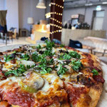 Rustikaler Weizen-Roggen Teig, Tomatensugo, Mozzarella, saisonales Gemüse, auf Wunsch mit Knoblauchöl. 15€
