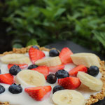 Herbst: Kürbis, Hummus, Cashews, frisches Grün getoppt mit Kernen. 12,50€